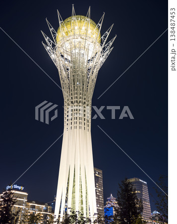 カザフスタン・アスタナ 夜空に輝くバイテレクタワー / Astana, Kazakhstan