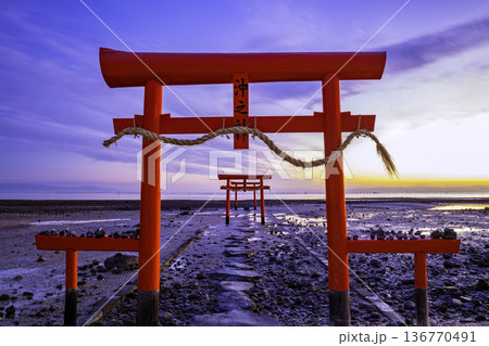 有明海の神秘的な風景 大魚神社の海中鳥居 (佐賀県)
