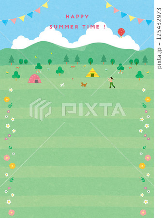 パステルカラーの自然とキャンプのイラストセット 子ども向け