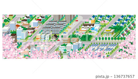 春の街並み. 街並みの立体図.