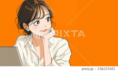おしゃれな部屋を思い浮かべる女性のイラスト