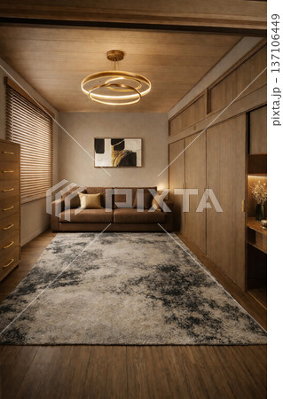 Warm Rug and Wooden Interior Furniture生成AI画像