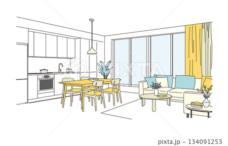 おしゃれなリビングダイニングキッチンのイメージイラスト素材