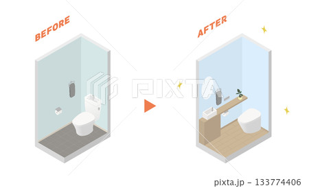 トイレ改装のビフォーアフター アイソメトリックイラスト