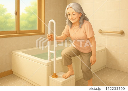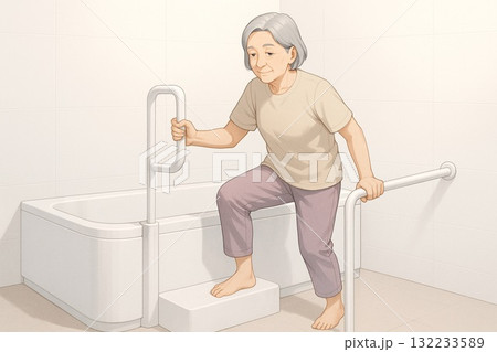アイソメトリックな浴室の段差が解消されたイメージ素材
