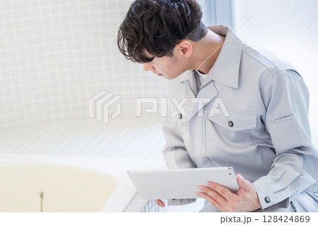 アイソメトリックな暖房を設置した浴室のイメージ素材