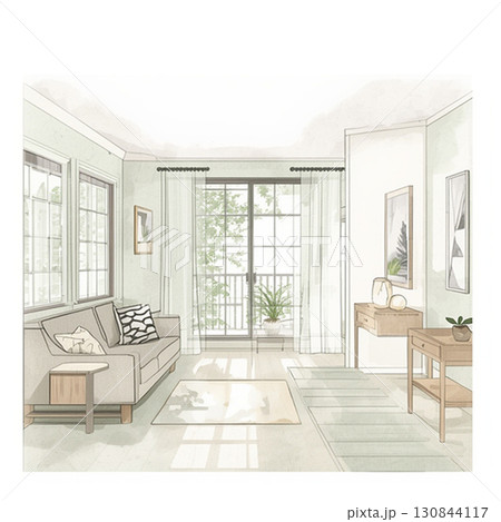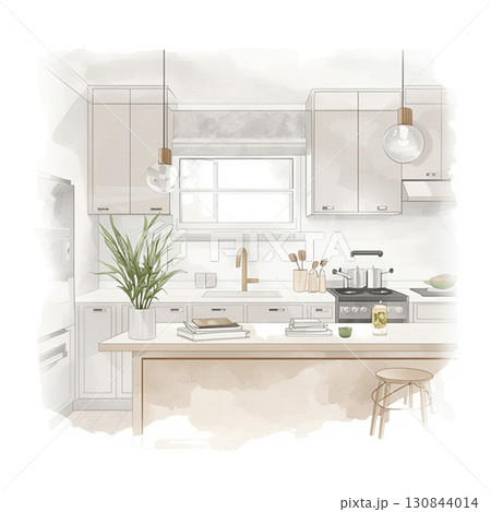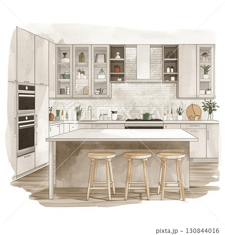 アイランドキッチンの水彩スケッチイラスト