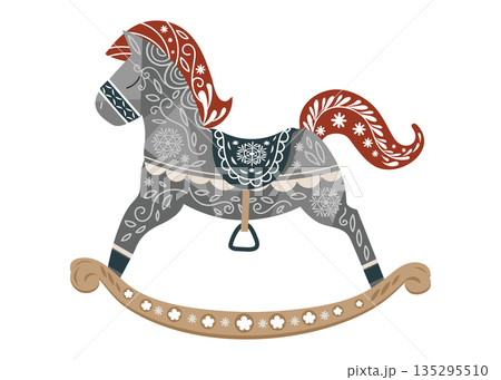 木馬のイラスト:北欧風の装飾を施したシックなロッキングホース
