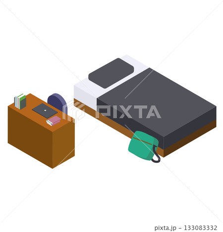 高校生男子の部屋(デスク・シングルベッド)のアイソメトリック素材