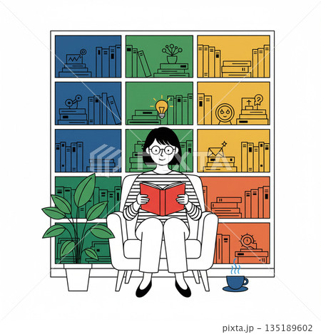 本棚と学習机が整然と並ぶシンプルで勉強に集中できる部屋のイラスト
