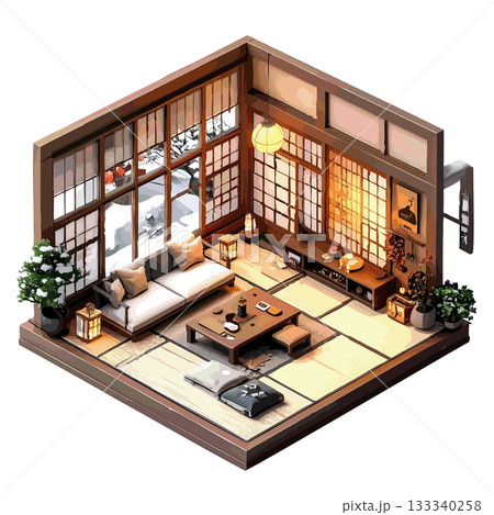 アイソメトリックな旅館の客室のイメージ素材