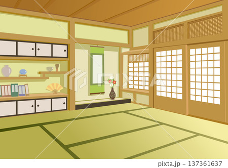 昔ながらの和室リビング 畳・和風インテリア挿絵・アイコン素材