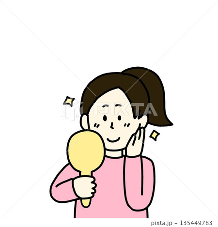 手鏡を見る女性のイラスト