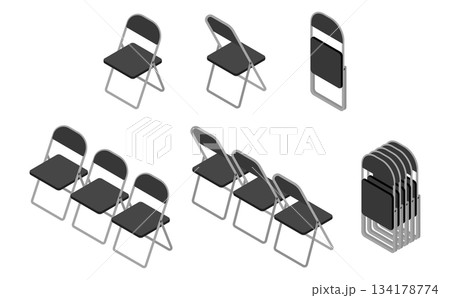 面接室の長机と椅子のシンプルでかわいいアイソメトリック線画イラスト