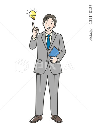 仕事中にコーヒーを飲んでアイデアが浮かんだビジネスマンのイラスト