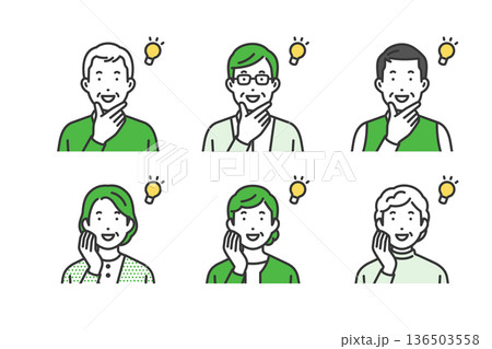 水彩風 ひらめくシニア男女のイラスト アイデア 表情素材 切り抜きPNG