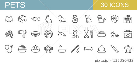 ペットに関する線画アイコンセット