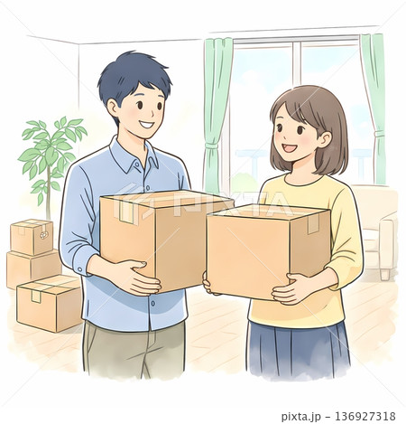 引越しをするミドルの夫婦