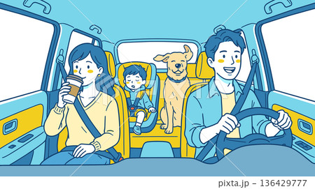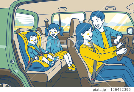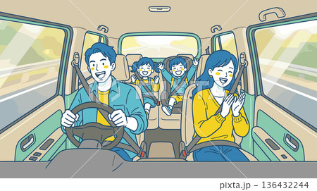 ドライブする家族の車内風景 安全運転イラスト