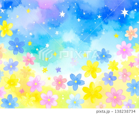 淡い水彩のパステルカラーの花の風景