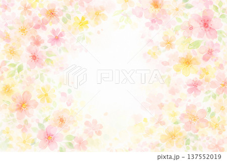 梅雨の時期を彩る雨上がりの花々をイメージした透明感のあるパステルカラーのボタニカルバックグラウンド