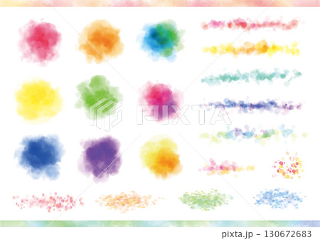 にじんだ濃い水彩テクスチャのカラフルなあしらいパーツセット