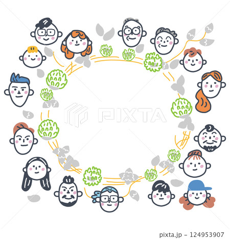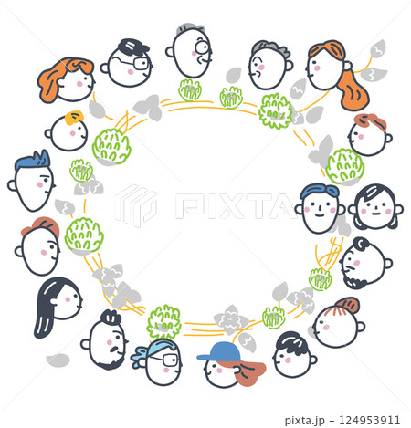 クローバーの輪と日本人と在日外国人 横顔 在日外国人シリーズ ストックイラスト素材