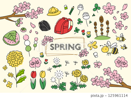 円を描くようにポンポンを振って応援する小学生たちとシロツメクサ ストックイラスト素材
