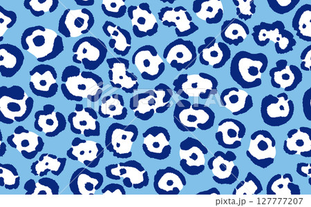ジャガー柄、アニマル柄のシームレスパターン、背景、ベクターデーター、総柄 ブルー