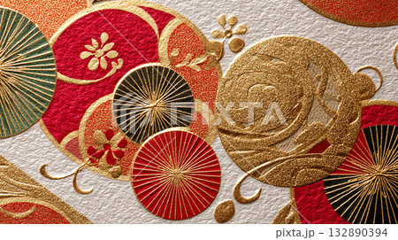 和紙に輝く赤白と金が彩るモダンな慶賀の正月イメージ背景