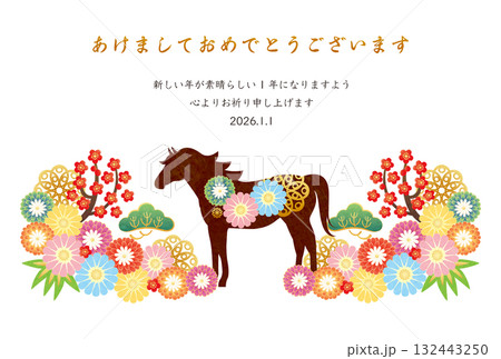 2026年午年の午と富士山と和柄の年賀状/縦03