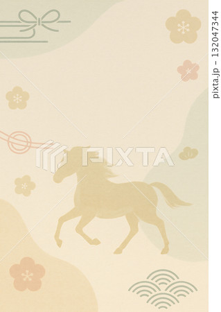 和紙風テクスチャに淡い馬のシルエット、 シンプルな干支デザインの馬シルエット背景、 モダンな和風デザ