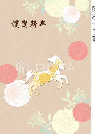2026年午年の午と富士山と和柄の年賀状/縦05・文字なし