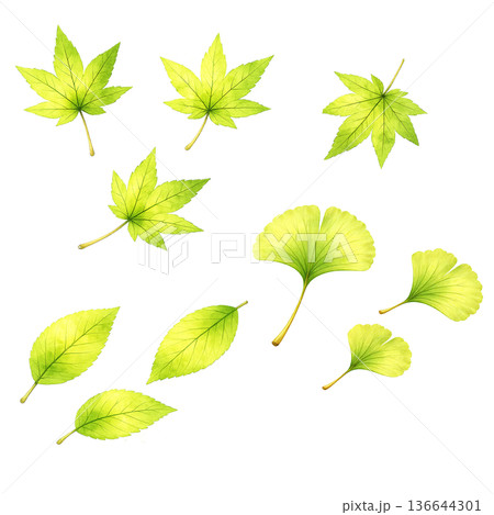 もみじ 緑 水彩 葉っぱ 春 シンプル イラスト 切り抜き素材