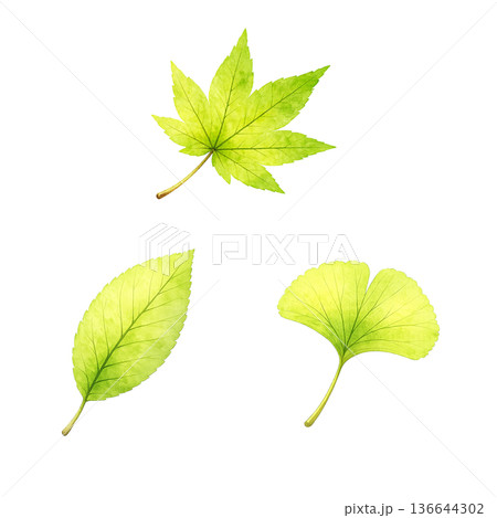 もみじ 新緑 葉っぱ 水彩 3枚セット ナチュラル イラスト 切り抜き素材