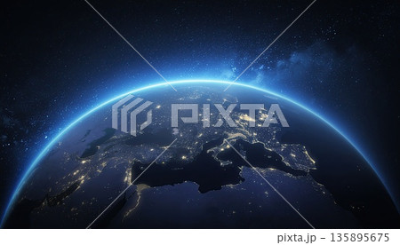 宇宙空間に浮かぶネットワークでつながるデジタル地球