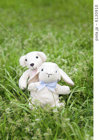 芝生の上のぬいぐるみ