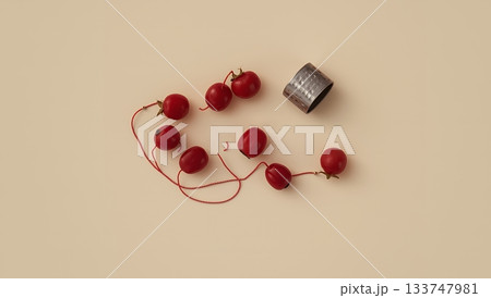 赤い実と糸と指ぬきの静物アート