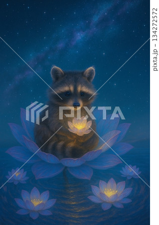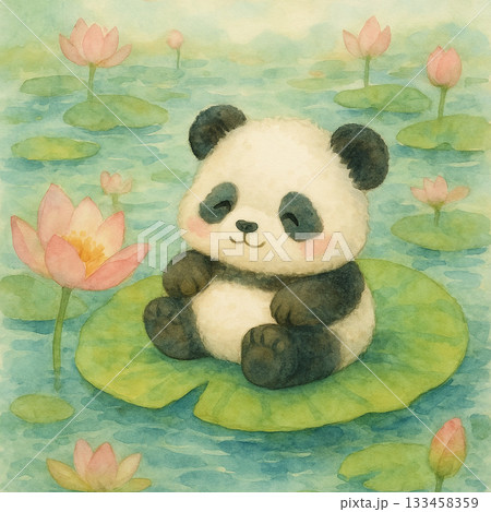 睡蓮葉上的可愛熊貓寶寶與荷花的夢幻時刻
