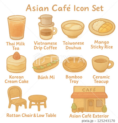 《世界のカフェアイコン》アジアン風カフェ / Asian Café Icon Set