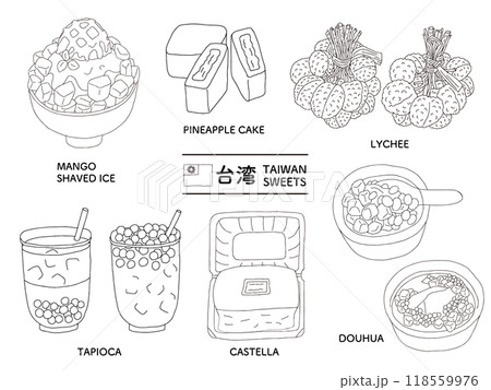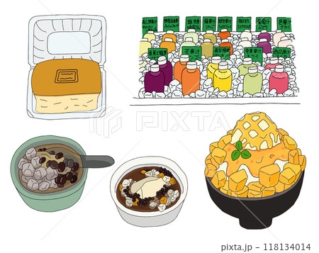 豆花や杏仁豆腐や芋圓やお茶などの、美味しくて個性的な台湾スイーツのアイコンです。