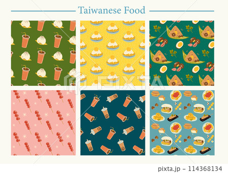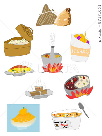 台湾の人気グルメ・名物イラスト①(飲茶、台湾唐揚、ルーローハン、台湾ラーメン、豆花、かき氷)