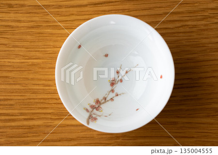 真上から見た台湾茶、中国茶用のお椀 (梅の絵柄)