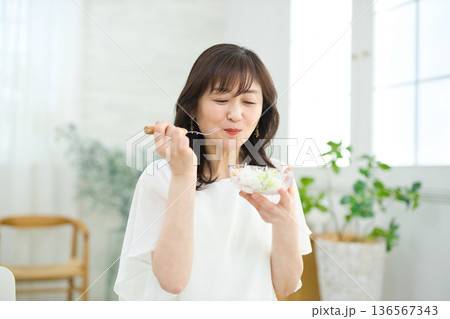 サラダを食べるミドル女性