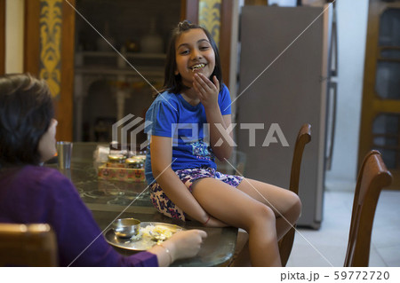 Mother-daughter having fun while eating