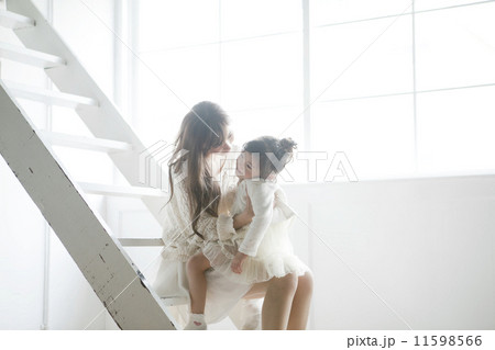 ハシゴでくつろぐ母親と娘
