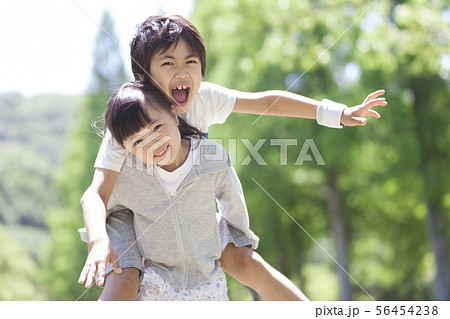男の子おんぶする女の子