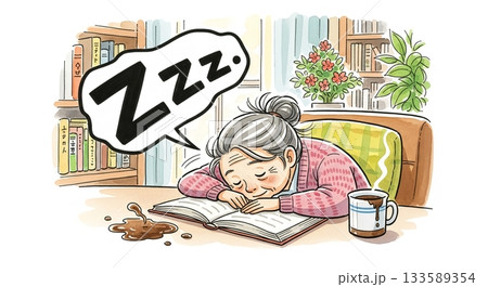 睡眠時無呼吸症候群の高齢女性のイラスト