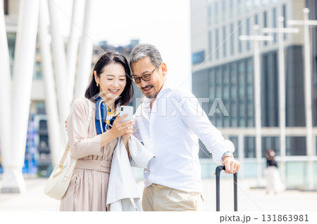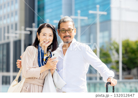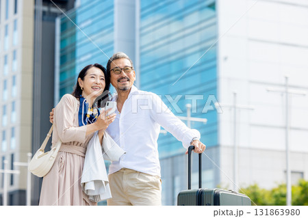 旅行をするシニア夫婦
