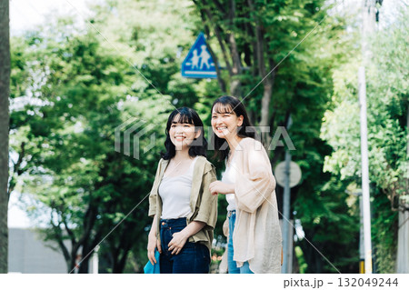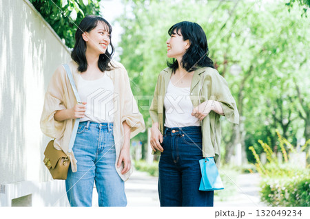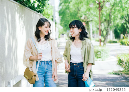 談笑しながら歩く女性友達